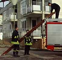 Augenblicke später war die Leiter abgeladen, ...wie im richtigen Einsatz...