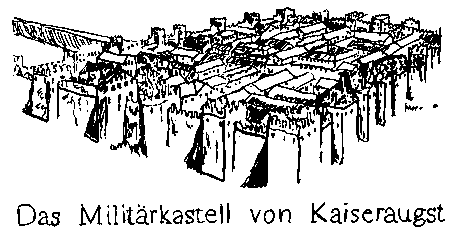 Das Kastell von Kaiseraugst dagegen hat wegen seiner Lage am Rheinufer, wo das Gelände leicht zum Fluß abfällt aber sonst ziemlich eben ist, eine traditionell rechteckige Form. Typisch aber die mächtigen Mauern und Türme.