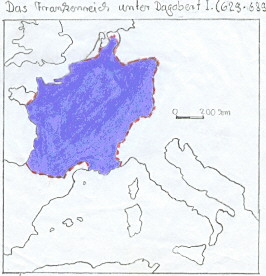 614 beginnt das Reich zu zerfallen, wird aber von König Dagobert I. (629-639) - er heißt wirklich so - noch einmal vereint.