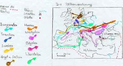 Im Jahre 375 n.Chr. fallen die Hunnen, ein nomadisches Reitervolk aus den weiten Steppen der Mongolei, im Gebiet zwischen Donau und Djenpr in der heutigen Ukraine unter ihrem Anführer Attila ein und lösen unter den germanischen Völkern eine Reihe von Wanderbewegungen, die sogenannte Völkerwanderungen aus.