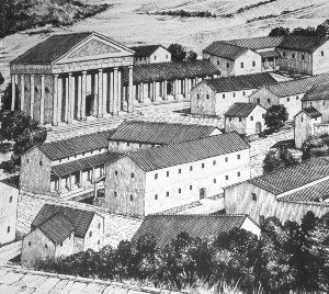 Bei den Häusern war ein quadratisch angelegter Garten mit einem Brunnen. Außen herum führte ein überdachter Gang, der sogenannte "Peristil". Hier hielt sich das Personal oder die Hausherren auf, wenn sie mal ihre Ruhe haben wollten.