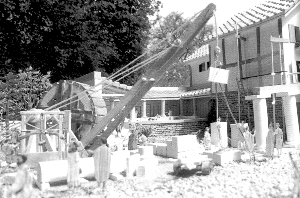 Bereits die Römer benutzten schon "Maschinen" zum Hausbau. Zum Heben der schweren Steine wurde ein Kran verwendet. Dieser Kran stand auf einer hölzernen Plattform. Am hinteren Ende waren zwei Seile an einer weiteren Welle befestigt, die am Ausleger des Kranes befestigt waren.