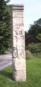 Die Saeule stand in der Naehe des Jupitertempels am Eingang zum Forum. Da der Tempel auch dem Kaiserkult diente, steht die Siegesgoettin wahrscheinlich ebenfalls im Zusammenhang mit dem Kaiserkult.