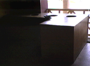 Schanktisch mit Tongefaessen fuer warme Speisen