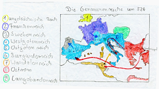 Daraufhin gründen sie das ostgotische Reich mit der Hauptstadt Ravenna, das 553 n.Chr von den Oströmern unter Kaiser Justitian erobert wird.